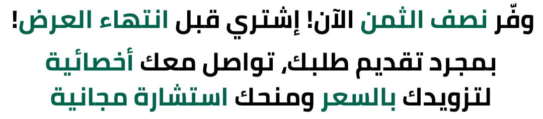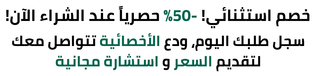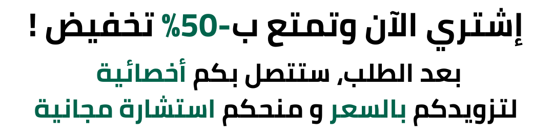 أطلب الآن واربح %50 ستقوم اخصائية بالإتصال بكم لمدكم بالثمن و الحصول أيضاً على إستشارة مجانية